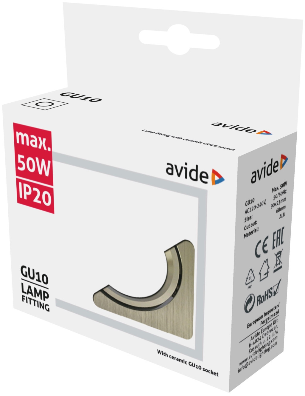 Avide GU10 Keret Négyzetes AluIP20 védelem.
