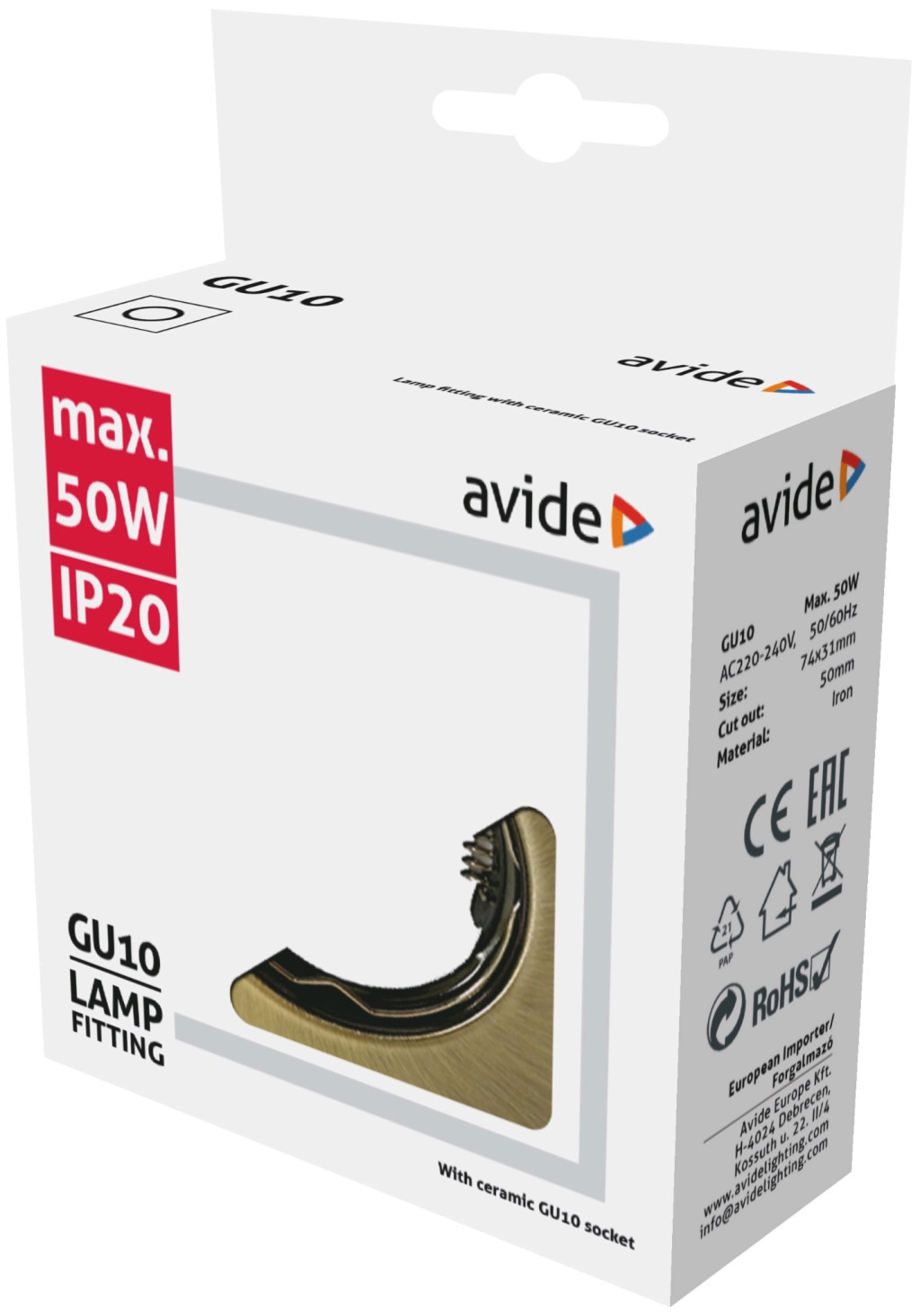 Avide GU10 Keret Négyzetes RézIP20 védelem.