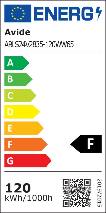 Avide LED Szalag 24V 24W 3000K IP65 5m24 W teljesítmény, 13200 lm fényáram, IP65 védelem.