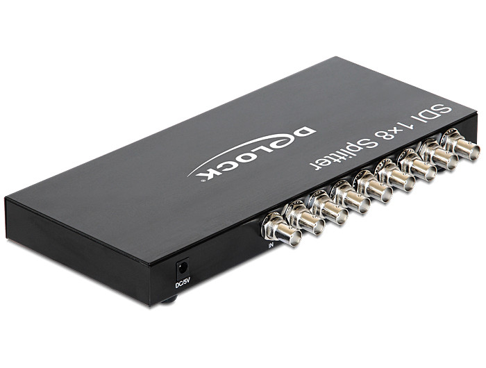Ez a Delock SDI elosztó egy SDI bemeneti forrás (pl. DVR, HD-SDI kamera vagy más SDI eszköz) jelének vételére és akár nyolc különböző kimeneti eszközre, például SDI monitorokra való szétosztására használható.