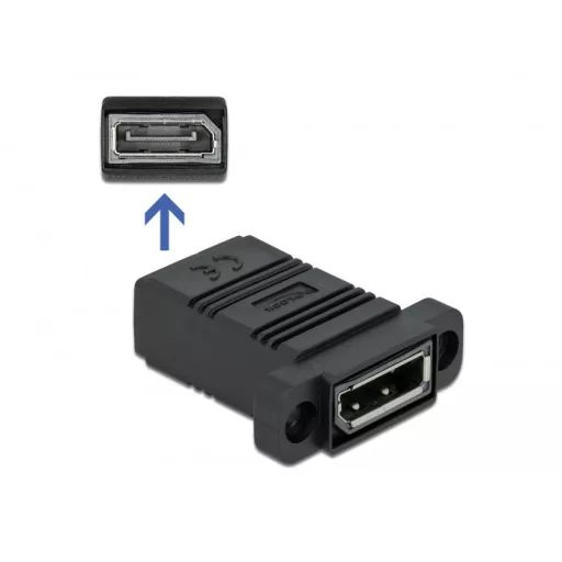 Ez a Delock Szisztem 45 adapter olyan kialakítású, hogy két DisplayPort vezeték összekapcsolására alkalmas. A adapter használható a vezetékek meghosszabbítására vagy általános adapterként. Az oldalán található bemélyedések lehetővé teszik a adapter eszközbe vagy például bútorhoz csatlakoztatását.