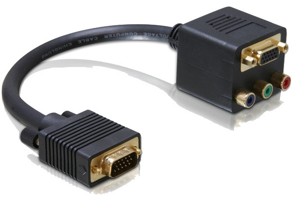 Ez a VGA adapter a Delock-tól 20 cm-es kábellel és arany bevonatú csatlakozókkal lehetővé teszi a csatlakozást további VGA eszközöknek, illetve a cinch csatlakozást.