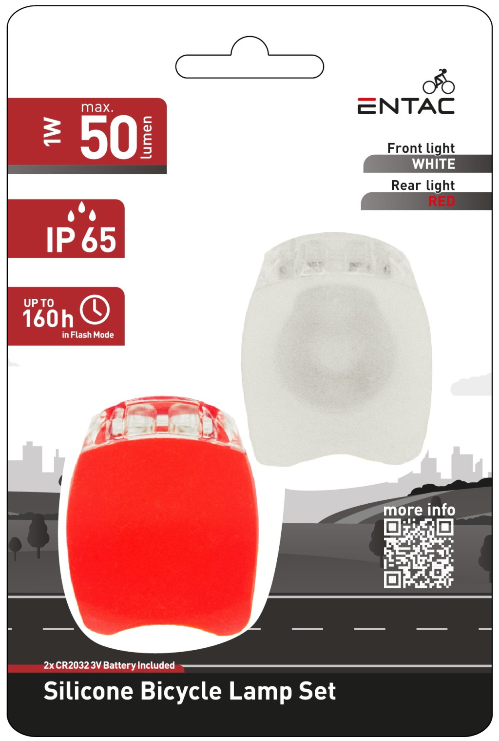 Entac LED-es, szilikonos kerékpárlámpa. A megfizethető minőség! _LEIRAS_ Olcsó, de nem olcsó kivitelű, "nem baj, ha odalesz" szilikonos LED lámpaszett (fehér és piros fénnyel). Nem zörög, nem esik szét a rossz utakon sem. Erős fénye van. Másodpercek alatt felszerelhető bármelyen biciklire. Kifejezetten napi kerékpáros használatra, három üzemmóddal. Működtetéséhez CR2032 elem mellékelve.