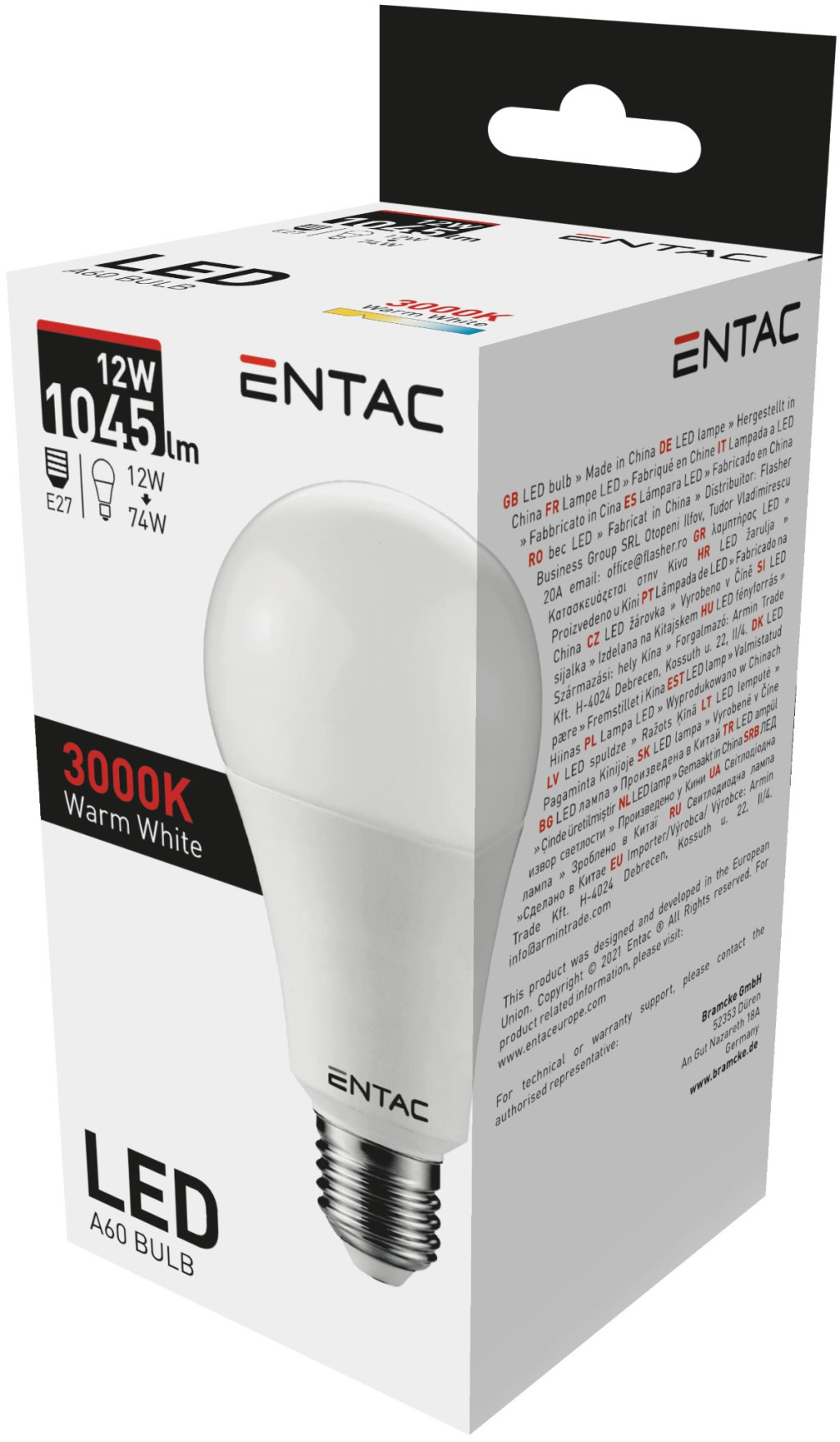 Entac LED Globe E27 12W WW 3000K12 W teljesítmény, 1045 lm fényáram, IP20 védelem.