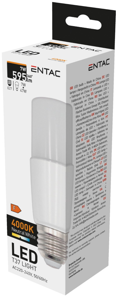 Entac LED T37 E27 7W NW 4000K (LLT27-7W-NW)