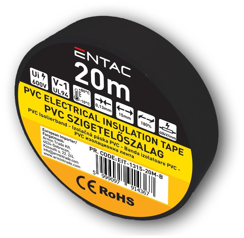 Entac Szigetelőszalag 0.13x15mm Fekete 20m (EIT-1315-20M-B)