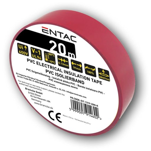 Entac Szigetelőszalag 0.13x19mm Piros 20m (EIT-1319-20M-R)