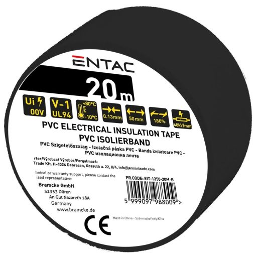 Entac Szigetelőszalag 0.13x50mm Fekete 20m (EIT-1350-20M-B)