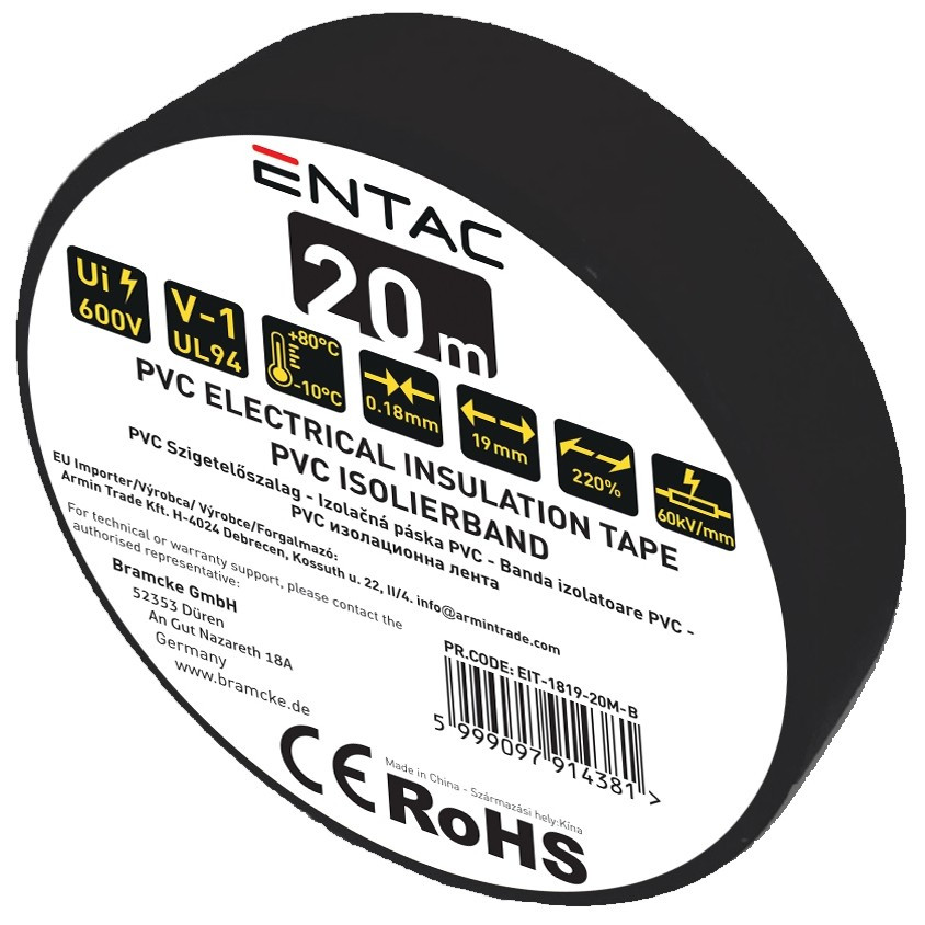 Entac Szigetelőszalag 0.18x19mm Fekete 20m (EIT-1819-20M-B)