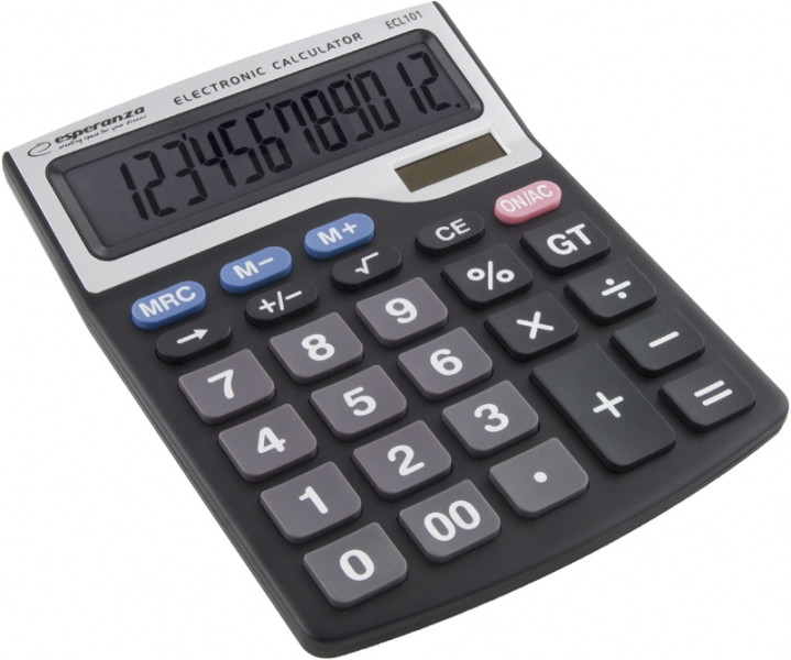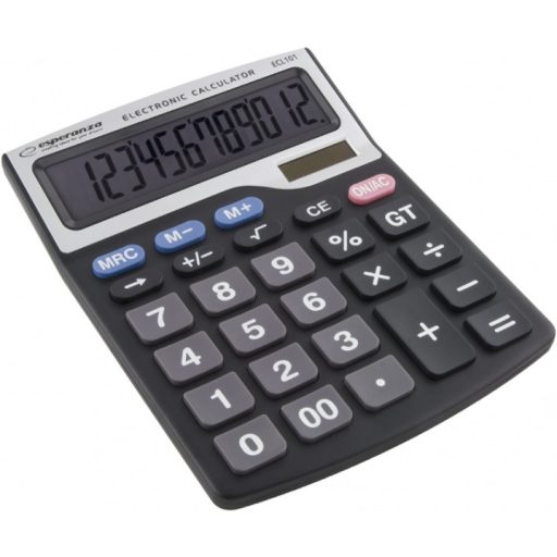 Elektronikus asztali számológép nagy, 12 számjegyu kijelzovel. Minden alapveto matematikai funkcióval rendelkezik (összeadás, kivonás, szorzás, osztás, négyzetgyök, százalékos számítás), a visszavonás funkcióval beírt számok és az eredmények tárolásának lehetosége. A ferde kijelzo, a nagy kijelzoszámok és a nagy gombok megkönnyítik a számológéppel való munkát. Ideális mindennapi használatra üzletekben és irodákban.