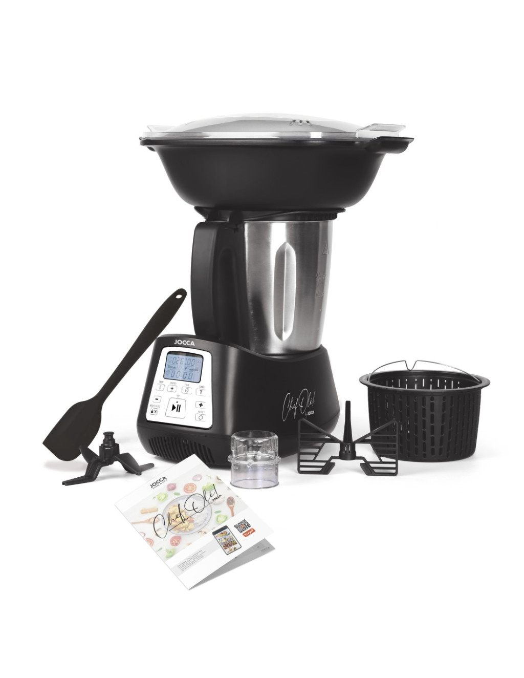 A Jocca konyhai robotgép 9 receptet tartalmaz több nyelven egy mellékelt füzetben. Mind a doboz, mind a füzet tartalmaz egy kódot a Tuya Smart alkalmazás letöltéséhez, ahol mindenféle receptet talál, beleértve a 6 hónapos kortól és idősebb babáknak szánt bébiételeket, könnyű ételeket, vegetáriánus ételeket és nemzetközi konyhák specialitásait.