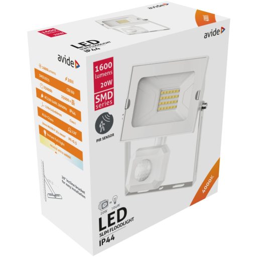 Avide LED Reflektor Slim SMD 20W NW 4000K Mozgásérzékelős PIR Fehér *Sérült Csomagolás* (ABSSFLNW-20W-PIR-W-SCS)